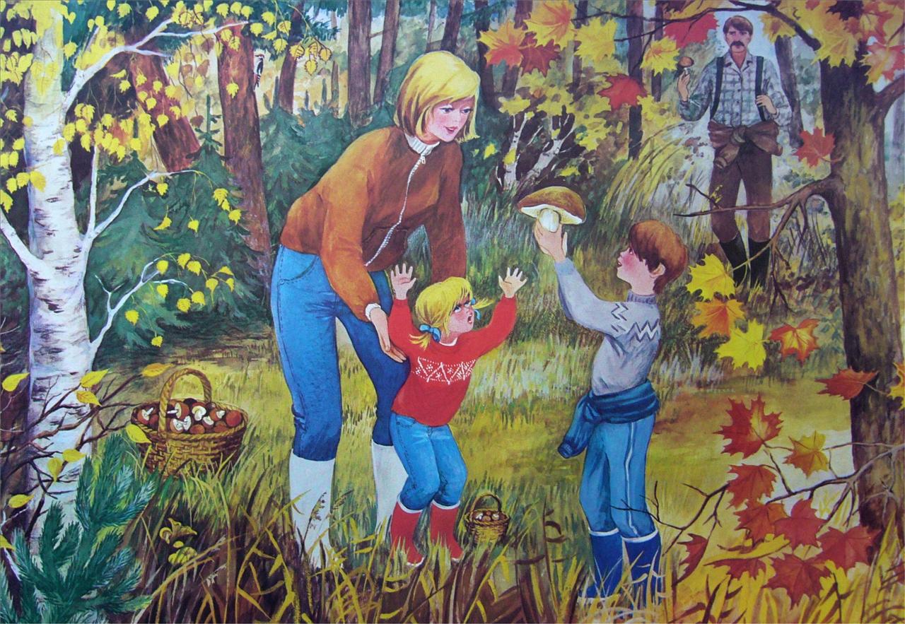 Ada i Tomek wraz z mama i tatą wybrali się na grzybobranie. Tego dnia była piękna pogoda, słońce przebijało się między kolorowymi listkami drzew, a ptaszki śpiewały jesienne melodie. Ada i Tomek nie znają się na grzybach, bardzo trudno jest im rozpoznać, które są jadalne, a które trujące, dlatego szukali grzybów razem z mamą i tatą. Długo spacerowali po lesie rozglądając się to tu to tam. Ten dzień nie przyniósł niestety zbyt wielu zbiorów, ponieważ dzieci wraz z rodzicami zebrały tylko trzy podgrzybki. Ale nic straconego, z pewnością następnym razem uda się zebrać ich więcej.