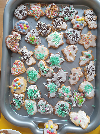 Czytaj więcejDzieci z grupy Biedronek przygotowują się do tegorocznych Świąt Bożego Narodzenia wykonując różne zadania z kalendarza Adwentowego. Jednym z zadań było upieczenie ciasteczek świątecznych. Biedronki z zapałem zabrały się do pracy, bo takie „zadanie” – to sama przyjemność. Jednak większą radość dało zadanie, by udekorować nasze upieczone ciasteczka. Dzieci z zapałem smarowały lukrem ciasteczka i […]
